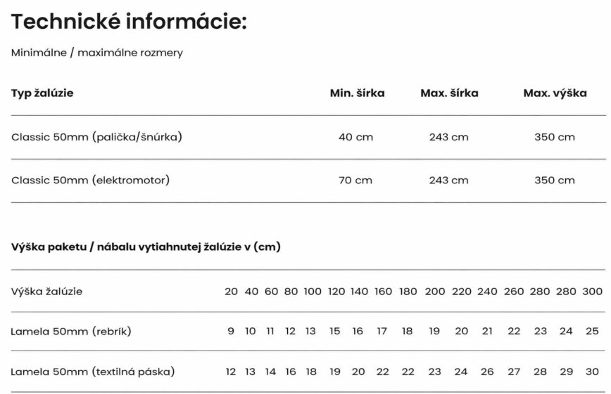 - Šírka lamely je 50mm